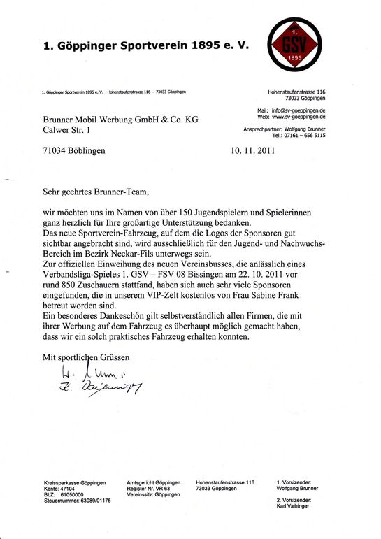 Uns erreichte folgendes Schreiben des 1. Göppinger Sportvereins: